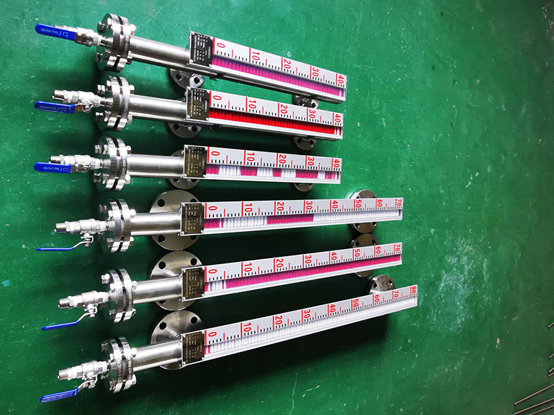 磁翻板液位计接线说明 磁翻板液位计接线出错,轻则导致测量不准,重则造成仪表损坏,所以在对磁翻板液位计进行接线操作时,一定要注意以下几点:1、在配线时应避开大容量的变压器、电动机或干扰源 ,2、拧下接线盒的接线端盖,将电缆穿过电缆接头,连接到24VDC两;3、根据需要连接接地端子;4、拧紧接线盒的接线端盖; 防爆型磁翻板液位计 防爆型磁翻板液位计则适用于易燃易爆的危险环境中,若需要电信号进行远程传输,则可以与磁开关或远传变送器相配合使用,可以实现高低液位的报警动作和对液位远程实时控制。磁翻板液位计的防爆等级属国家防爆最高等级标准,其中隔爆型磁翻板液位计高达ExdIICT6(磁开关/干簧管远传变送器),本安型磁翻板液位计高达ExiaIICT6(磁开关/干簧管远传变送器)。除此之外,磁翻板液位计的防护等级均有IP65、IP66/IP67可选,远超国标IP54的要求,这些都为安全生产带来了极大的保障,使磁翻板液位计更为稳定和可靠。 磁翻板液位计有报警功能吗? 磁翻板液位计报警功能:上下限发讯器,它装于系列磁翻板液位计主体外侧相应于上限下限报警位置上,当主体内磁浮子上下运动至该点时,磁性组件将发讯器内于簧管触点吸合或断开,发出开关信号。型上下限发讯器输出的信号具有自保持功能,因而不怕停电,复电后,发讯器触点的工作状态仍能如实地反映被测介质(起决定作用的物质)液位的真实情况。 磁性翻板液位计原理,优点,安装方式,应用! 磁性翻板液位计是一种在大型罐区非常常见的液位测量仪器。它是根据浮力原理制作的。磁性翻板中的浮子在主体内(与容器相连),随着被测介质液位的升降而上下浮动。内浮子的磁性部件被用来吸引翻板中的指示器,直接显著地指示被测容器中的液位变化。可直接用于观察各容器介质的液位高度。非常适用于石油、化工等工业领域的液位指示,用于各种塔、罐、罐、球形容器、锅炉等设备的介质液位检测。由于磁性翻板液位计具有结构简单、观察直观、清晰、无堵塞、无渗漏、安装方便、维护简单等优点,特别受用户欢迎。磁翻板液位计有两种安装方式:侧装和顶装。无论哪种方式,远程传输装置都可以捆绑,这样液位计就可以就地显示液位,远程监控液位。捆绑后的磁翻板液位计可称为远程磁翻板液位计。磁翻板液位计包括不锈钢、不锈钢衬四氟乙烯和塑料表面。根据介质温度、压力和腐蚀强度的不同,正确选择材料。广泛应用于化工企业,具有显示直观、安全可靠、故障少的优点。弥补了玻璃板(管)液位计指示清晰度差、易破裂等缺陷,全过程测量无盲点,显示清晰,测量范围大。 磁翻板液位计投入使用时注意事项 磁翻板液位计现场投用时,要特别留意应先翻开上部闸阀,后翻开下部闸阀。这是由于液位计连通管的底部装有维护浮子的止推弹簧,否则,大差压的作用可能撞碎浮子招致液位计无法运用。液位计运用过程中,假如输出信号产生频繁扰动或有干扰脉冲,就要检查信号电缆屏蔽层能否牢靠接地,工作接是电阻能否满足请求。假使干扰依然没有完整消弭,可用信号隔离器来处理。磁翻板液位计投用一段时间后,呈现浮子难以浮起且浮子挪动不灵敏的状况。这根本上是由于磁性浮子上沾有铁屑或其他污物形成的。可先排空介质,再取出浮子,消弭磁性浮子上沾有的铁屑或其他污物即可。假如因运输或其他缘由招致现场指示用的密闭玻璃管决裂,则可用国产玻璃管改换。但最好能抽真空。还要留意玻璃管能否垂直,以免影响指示器的指示。磁翻板液位计运用时特别要留意,千万不要用强磁铁在连通管外上下拉动浮子停止检查,否则会招致磁性浮子磁化而改动极性,以至会使浮子磁性削弱,致使难以正常工作。
